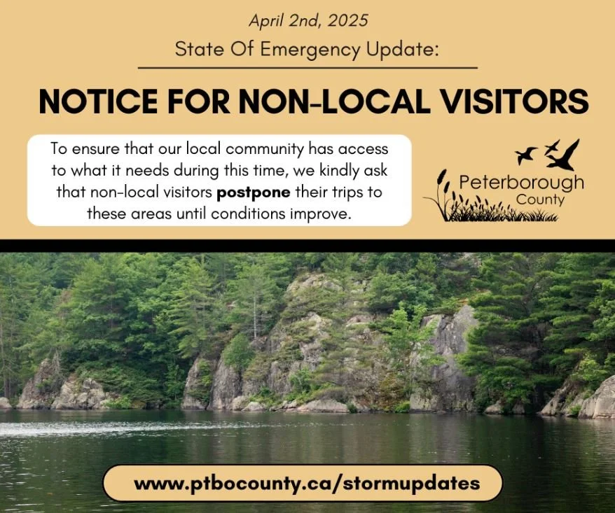 Peterborough County remains (as of April 19) in a State of Emergency: Storm Updates is the website for viewing County updates. Crews from across Canada are helping to return the area to normal operations.